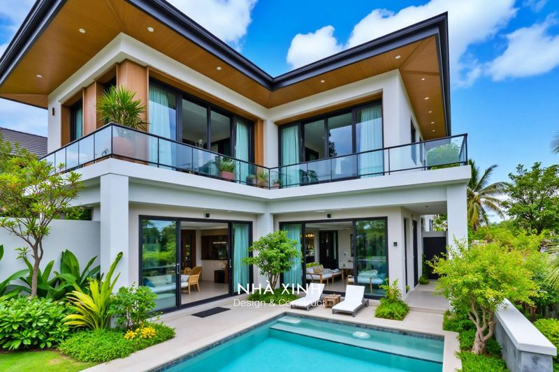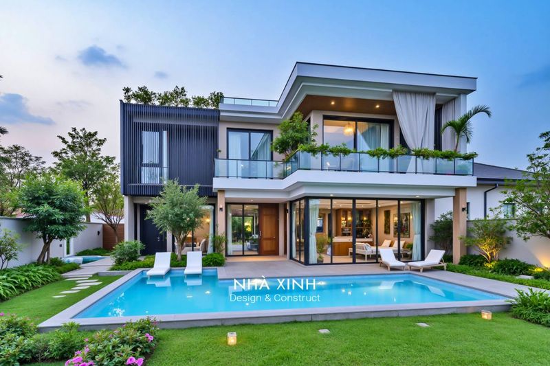 • Diện tích xây dựng và sử dụng: thường thiết kế 3 tầng, diện tích sàn ~220–300m²; sân vườn và hồ bơi riêng.