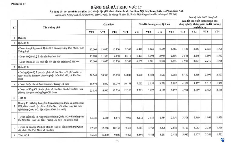 - Thông thường giá được công bố theo m2. Cần đối chiếu thông báo chính thức để xác định đúng đơn vị tính.