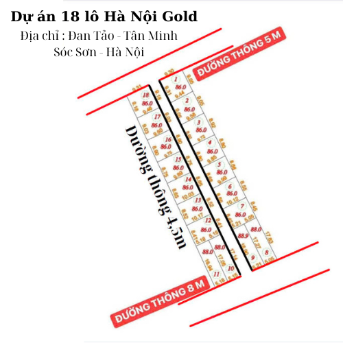 Cơ Hội Đầu Tư Lý Tưởng: Dự Án 18 Lô Đất Của Chủ Đầu Tư “Hà Nội Gold” Tại Huyện Sóc Sơn,Hà Nội – Tiềm Năng Tăng Giá Cao, Vị Trí Đắc Địa, Giao Thông Thuận Lợi – Sẵn sổ hồng công chứng sang tên luôn trong ngày.