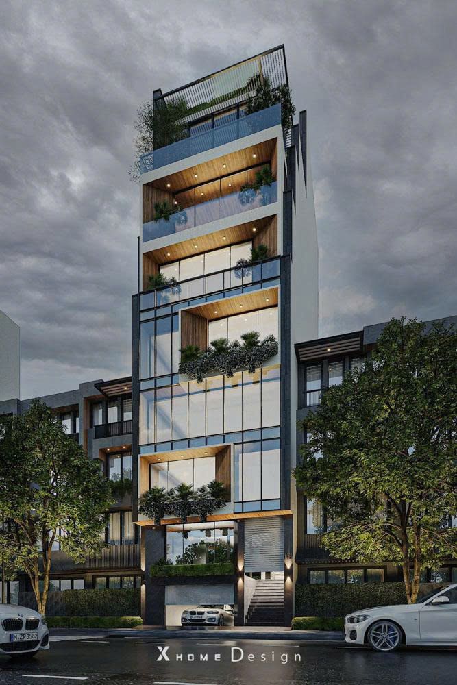 Thiết kế một nhà phố 7 tầng cần cân bằng giữa hiệu quả sử dụng đất, tính thẩm mỹ và yêu cầu kỹ thuật. Việc bố trí 2 hầm đòi hỏi chú trọng đến địa chất, thoát nước, thông gió và PCCC.
