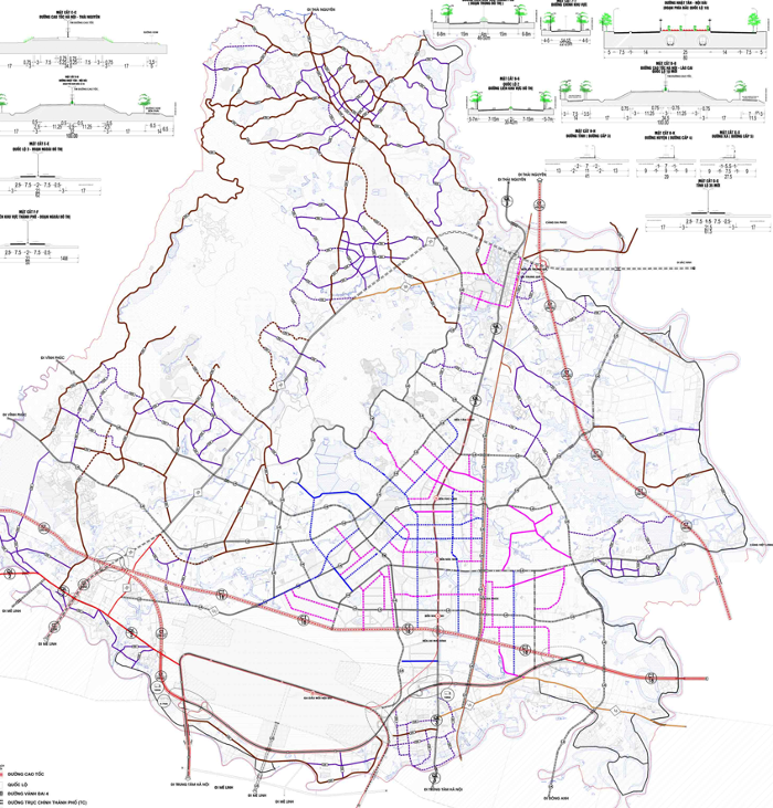 - Hệ thống trục khu vực (Main feeders): Kết nối các trung tâm hành chính, cụm dân cư, khu công nghiệp đến trục chính.