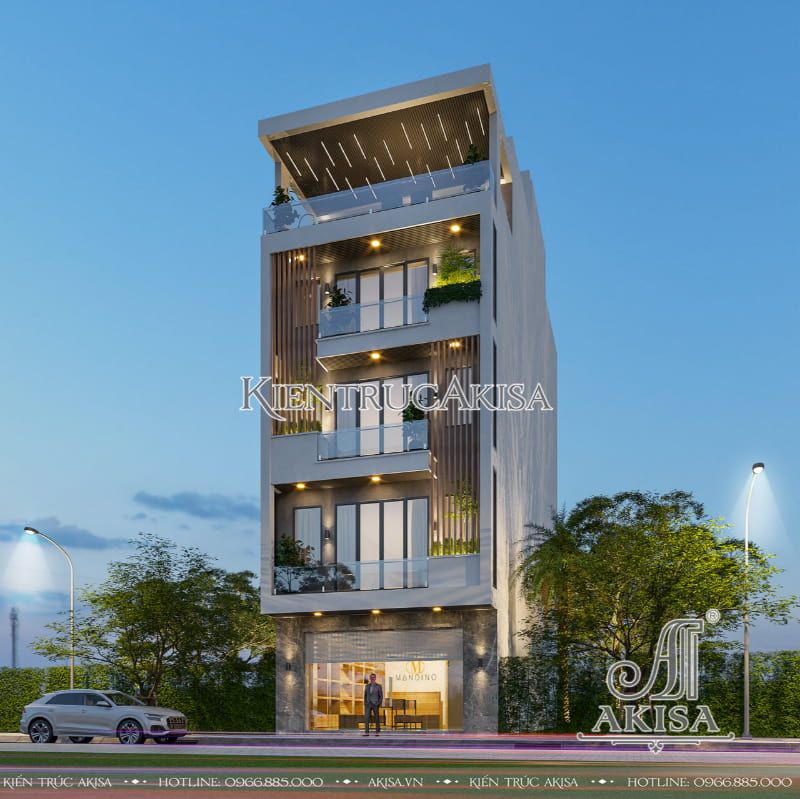Hình ảnh minh họa mô hình shophouse hiện đại, tối ưu hóa công năng theo mô hình 5 tầng: