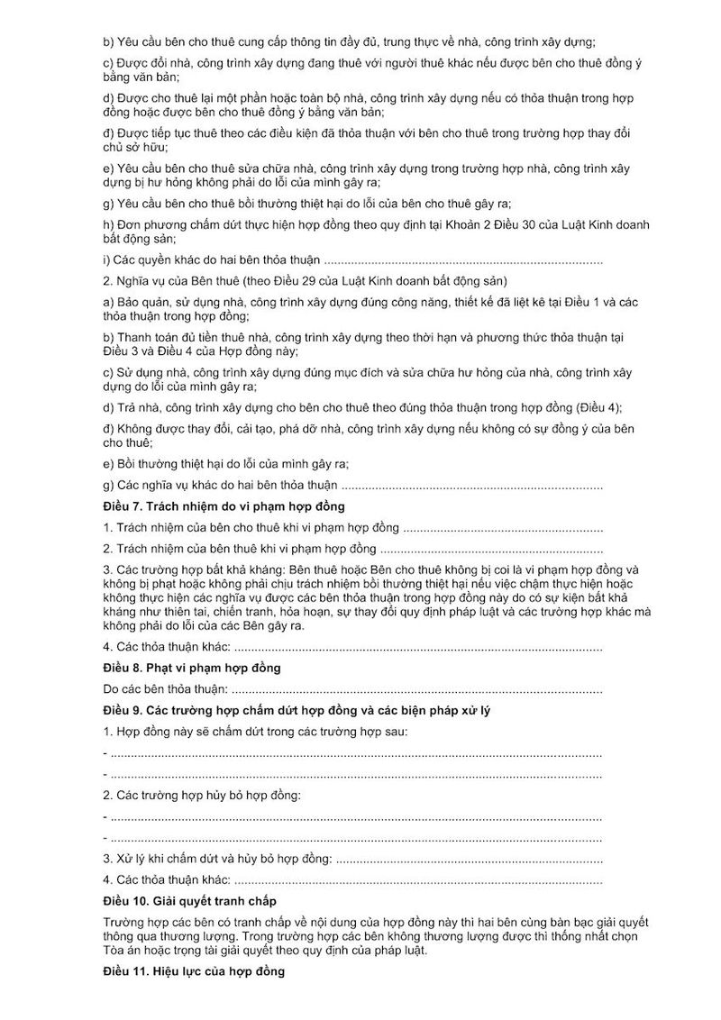 9. Mẫu cấu trúc hợp đồng thuê nhà đất và các điều khoản cần lưu ý
