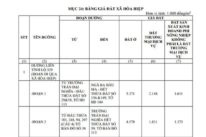 Bảng giá đất Hiệp Hòa chính thức 01/01/2026