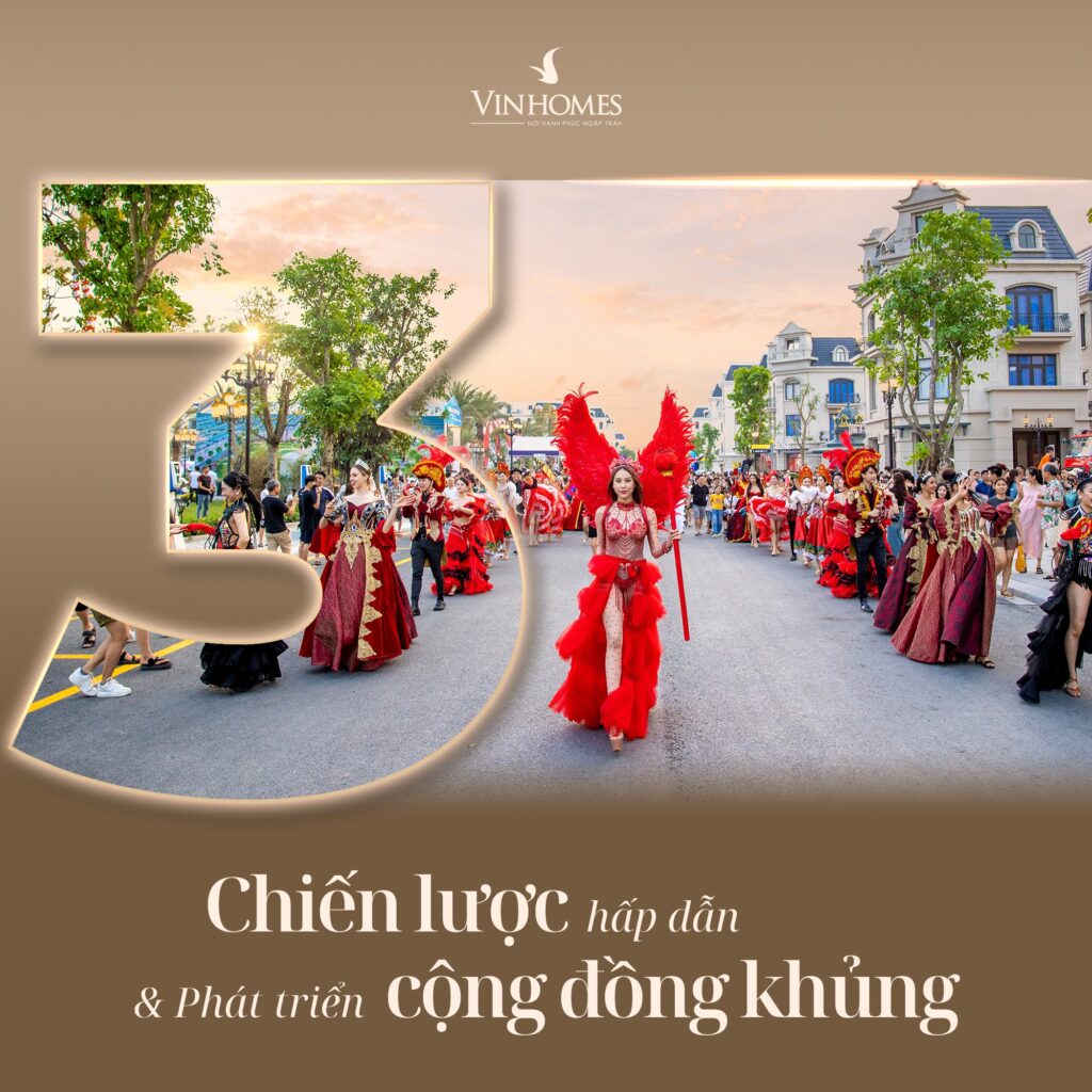 - CHIẾN LƯỢC PHÁT TRIỂN CỘNG ĐỒNG KHỦNG: Có thể nói trên thị trường hiện nay hiếm có chủ đầu tư nào có tiềm lực triển khai các hoạt động phát triển cộng đồng quy mô, đều đặn, liên tục tại hầu hết tất cả các dự án như Vinhomes.