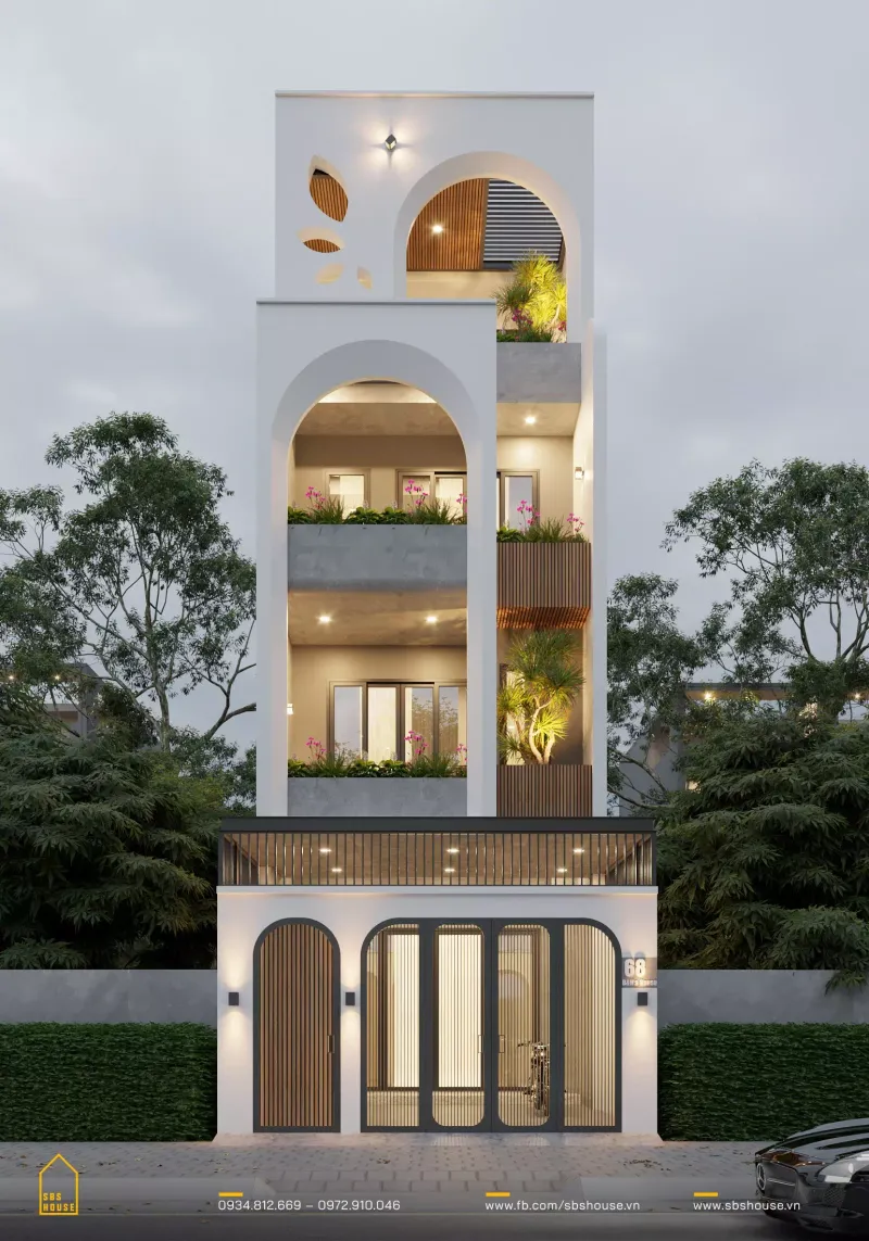 - Bố trí không gian linh hoạt: tầng trệt dành cho kinh doanh nhỏ, các tầng trên cho cư trú.